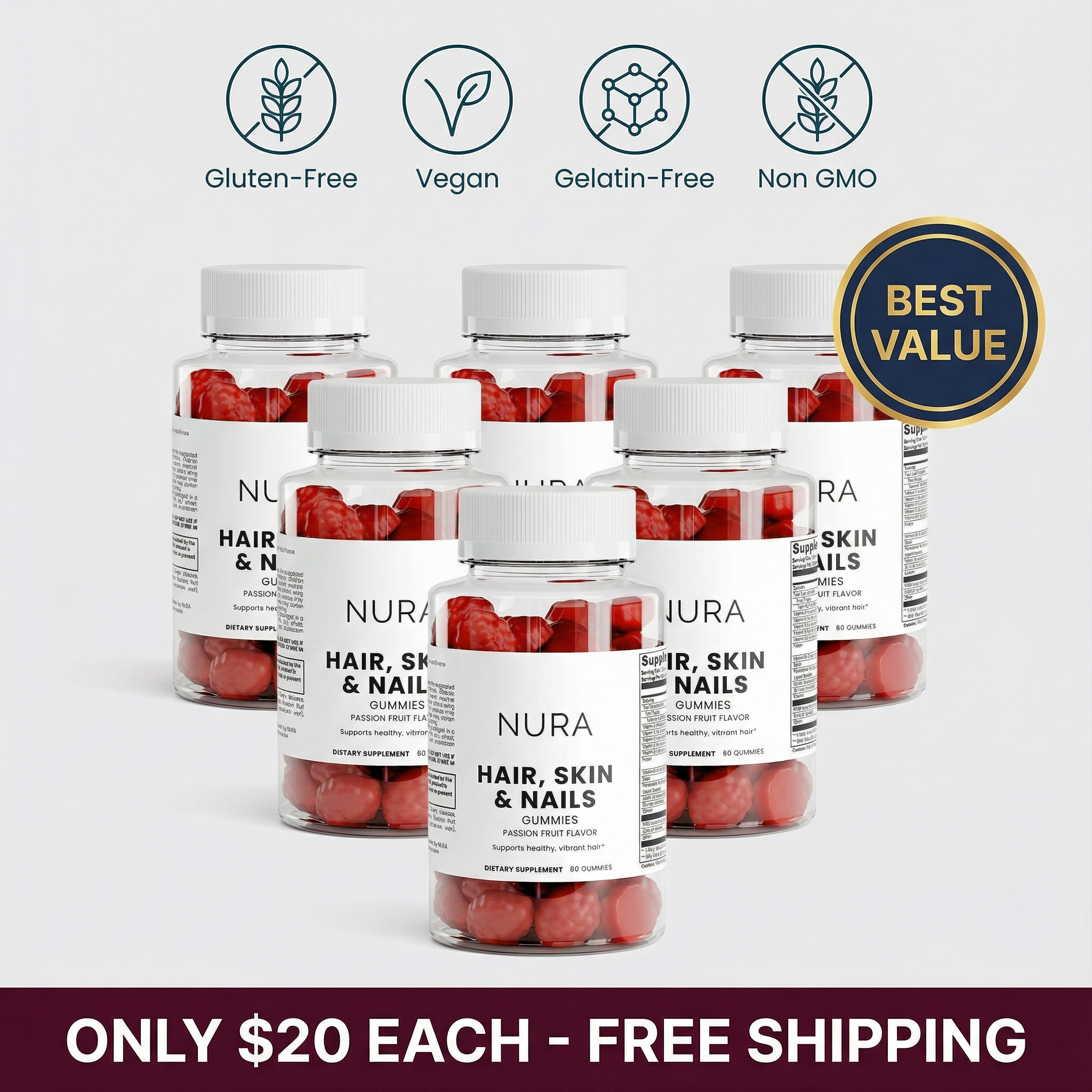 Most hair gummies use synthetic biotin your body can barely absorb. You literally pee out most of it. NURA uses three ancient, plant-based ingredients (Bamboo Silica, Tremella Mushroom, Amla Berry) that nourish your hair follicles from the inside out. That's why women see actual baby hairs with NURA when nothing else worked.