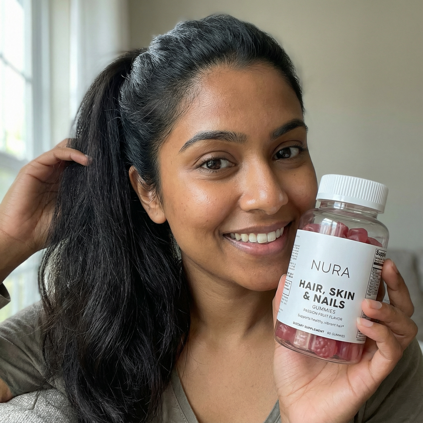 No. Most hair gummies mega-dose biotin, which competes with Vitamin B5 and triggers cystic acne. NURA uses a balanced formula WITH added B5 to prevent breakouts. We call it "skin-safe hair growth" because trading thinning hair for acne isn't a solution.